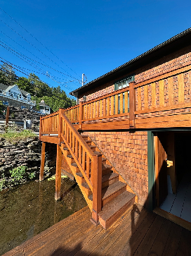 This Harveys Lake house stain turned out incredible, bringing out the rich natural tones of the wood while perfectly complementing the waterfront setting. The finish not only enhances the beauty of the decking and siding but also provides strong protection against the elements. It’s a clean, warm look that makes this entire space feel like a true lakeside retreat.