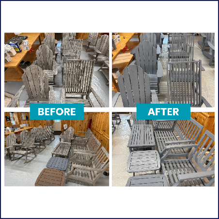 We had the privilege of restoring these teak tables for the Eagles Mere Inn, bringing them back to life with a rich, refreshed finish.  The before and after shows the transformation-enhancing the natural grain while adding durability for long-lasting outdoor use.  The final result is a clean, warm look that perfectly complements the space and keeps these tables looking their best season after season.