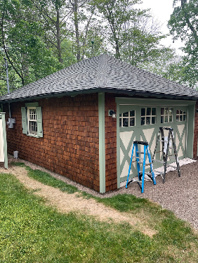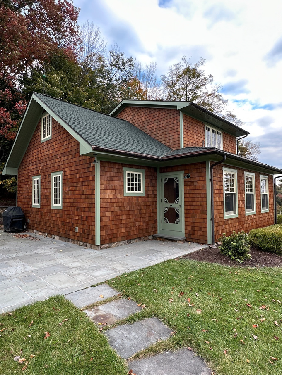 This Home in Eagles Mere, showcases a perfect blend of rich wood staining and crisp, clean trim work that enhances the home’s classic character. The stain work brings out the natural beauty of the cedar wood siding while the painted trim adds a clean, defined contrast to the home. The updated trim lines sharpen the entire exterior, while the stain enhances the warmth and character of the cedar wood. The result is a timeless, well-balanced finish that fits seamlessly into its surroundings.